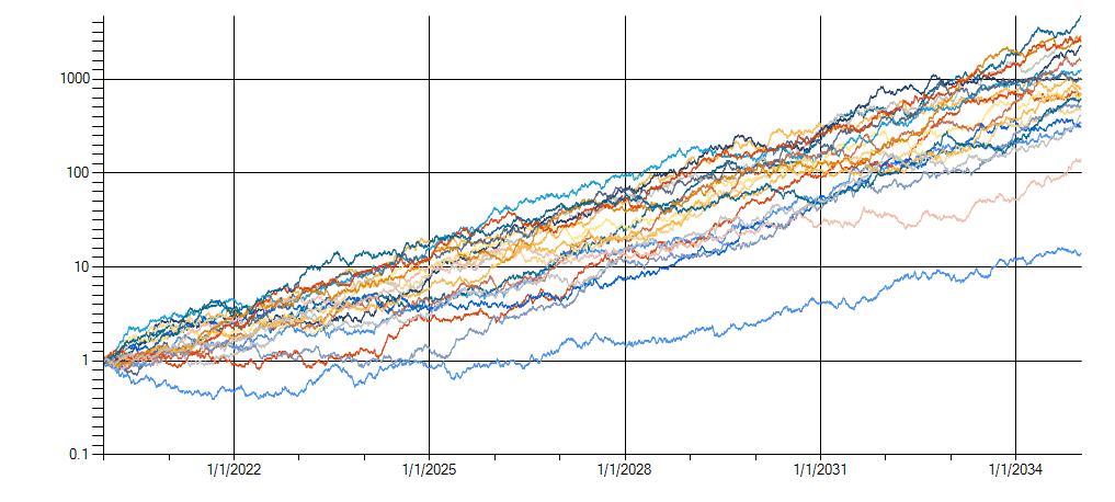 - На долгосроке при реалистических параметрах итоговый результат очень волатилен и непредсказуем. Увы, в существенной степени он зависит от вашего везения.